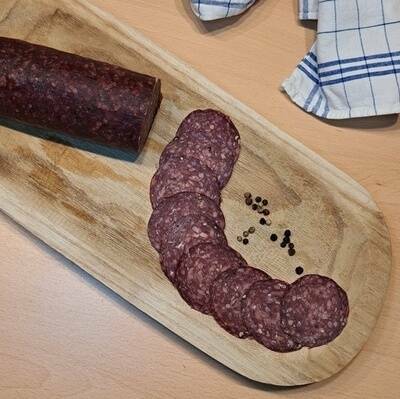 Bisonfleisch, Nitritpökelsalz (Speisesalz, Konservierungsstoff, Natriumnitrit), Gewürze, Senfkörner, Maltodextrin, Dextrose, Aroma, Geschmacksverstärker: Natriumglutamat. Antioxidationsmittel: Natriumascorbat, Würze, Rauch.